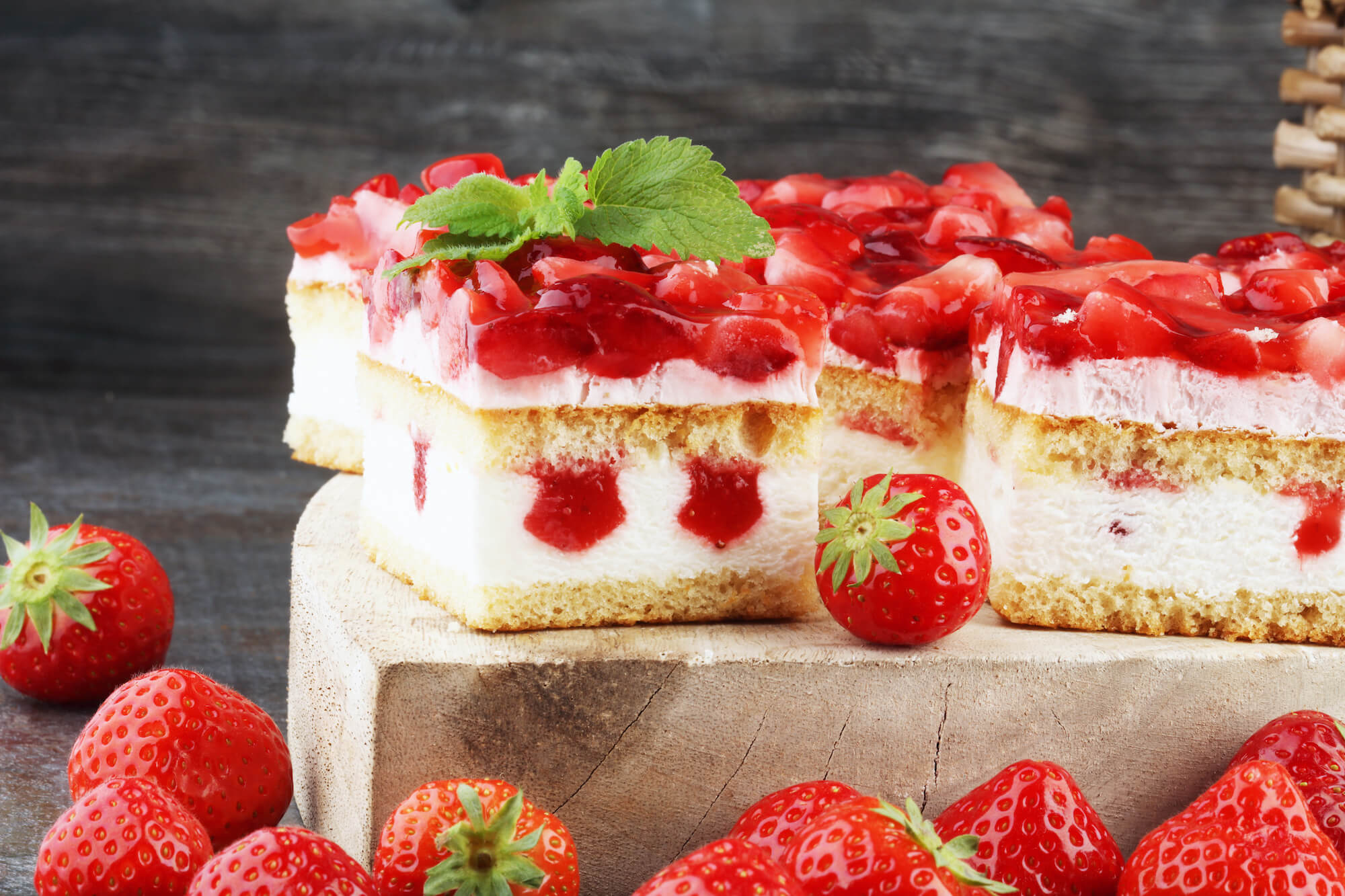 Using only freshly picked strawberries, plucked daily from our fields, our seasonal strawberry cake heralds the start of our summer selection. Moist and creamy vanilla sponge sandwiches a rich mascarpone filling that’s crowned with a hand-made strawberry yoghurt and jelly topping. It’s delicious, sensational and baked daily, ready to be the highlight of your summer soiree.